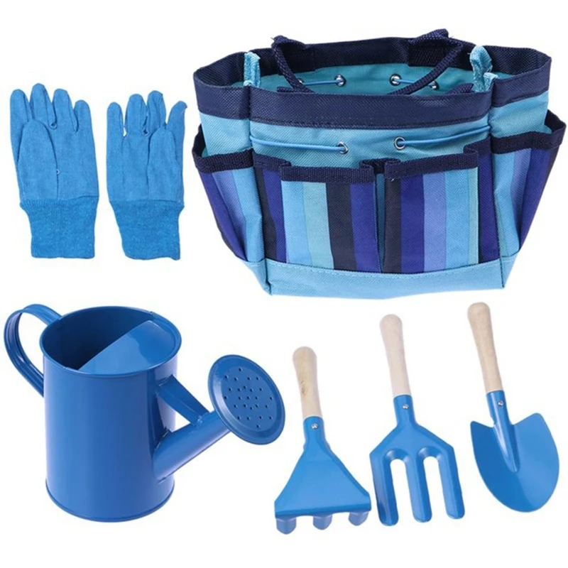 Review Kids Children Gardening Tools With Garden Gloves And Garden Tote Outdoor Children'S Tool Set(Blue)