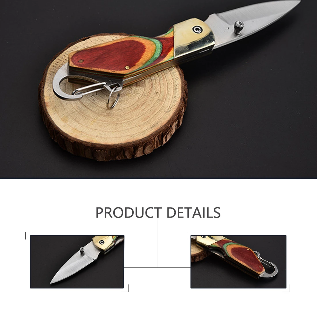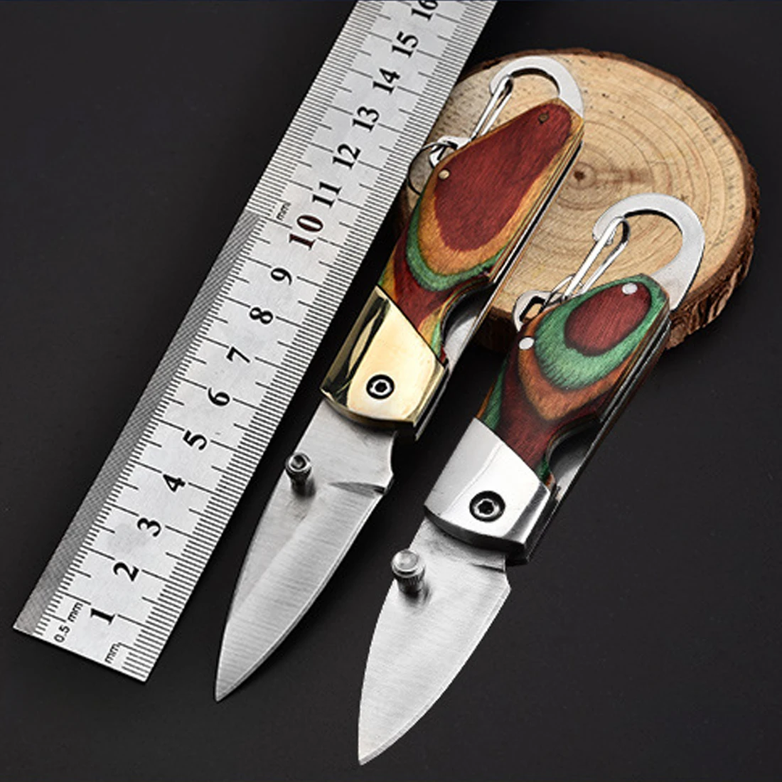 New Stainless Steel Mini Folding Knife With Carabiner Hanging Buckle Hike Outdoor Camp Survive Kit